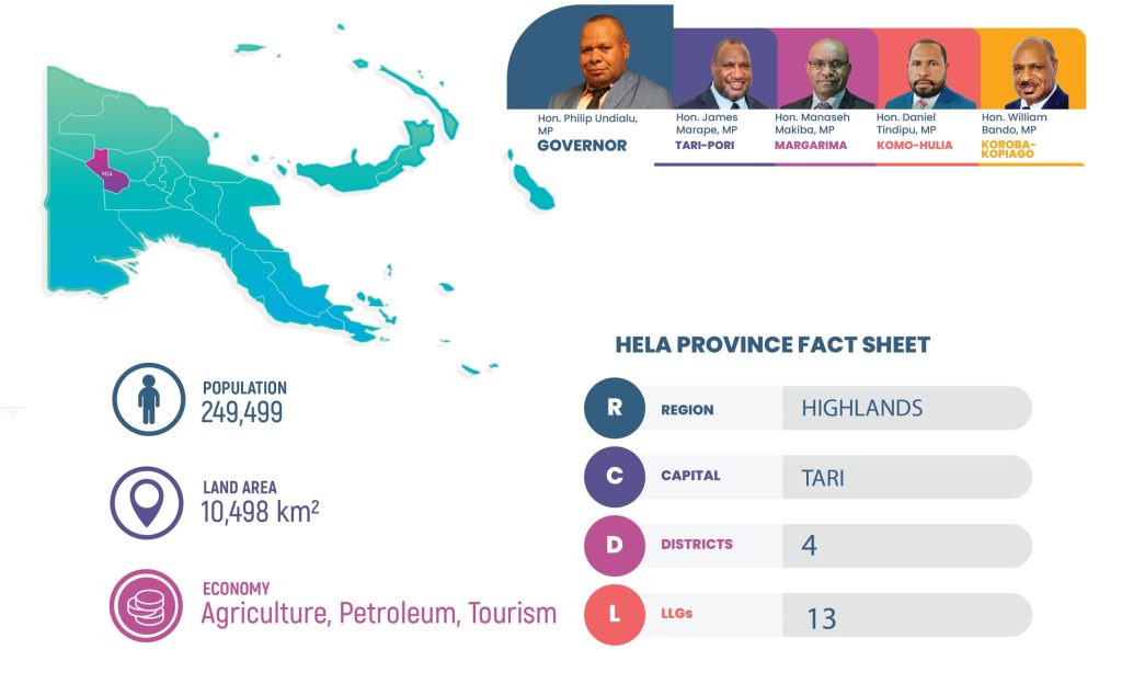 Hela Province in Papua New Guinea is home to the PNG LNG project and oilfields, contributing to its economic development. The province has significant potential in agriculture, including coffee, fresh produce, livestock, and downstream processing. There are also opportunities for tourism development and the generation of energy from hydro and gas resources. Hela Province follows Planning and Service Delivery Frameworks, developing Provincial and District Development Plans aligned with the MTDP IV. These plans address minimum service needs and strategic economic investment opportunities, ensuring coordinated and sustainable development.